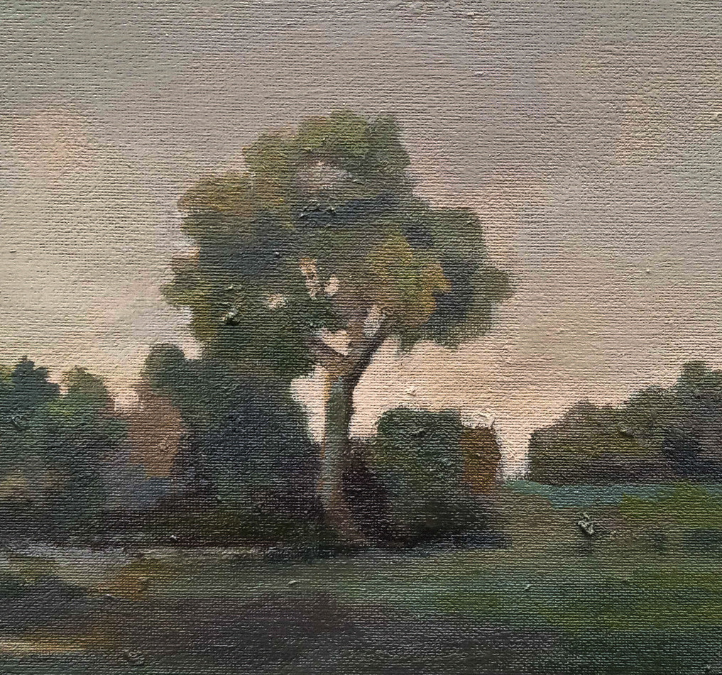 Serenely, a solitary tree stands majestically at dusk, its silhouette softly outlined against a dusky sky transitioning from hues of deep orange to soft purple. The surrounding meadow, blanketed in the tranquil embrace of twilight, offers a peaceful contrast to the tree's sturdy presence. Gentle whispers of a cool breeze seem to rustle through the leaves, as the day's last light fades into the horizon, casting an ethereal glow over the entire landscape..