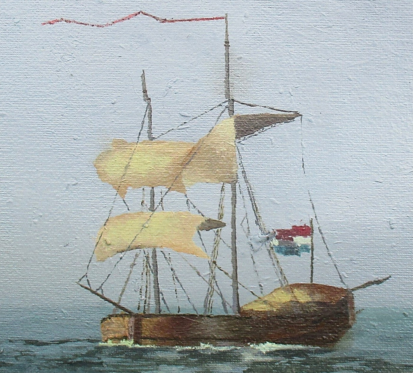 Painting of a trading brig I saw in a painting once. I wanted to paint it. The sails caught my eye and i saw it as challenge to depict them in this study.